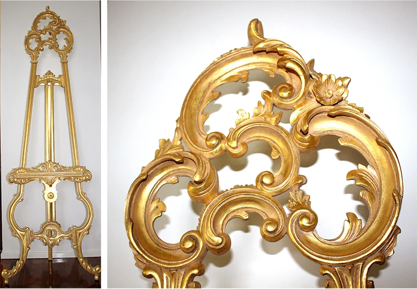 Gilding such a large intricate piece was challenging with the 3 - dimensionality, and sheer size of the easel.