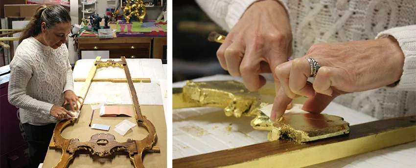 Once I had completed gilding all sections, similar steps were taken to tone the whole piece... toning, cleaning, then repeating on the opposite side.
